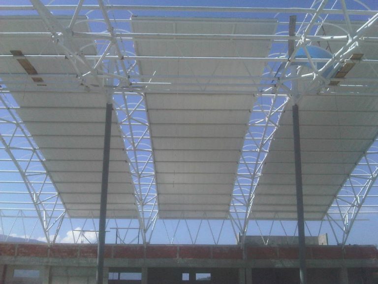 Las cubiertas se ofrecen de diferentes materiales: aluminio estucado en espesores de 0.5mm o 0.7mm y acero galvanizado o Gavalum en calibres 26″ ,24″ o 22″. La versatilidad de este sistema hace que pueda adaptarse a los más elaborados diseños de estructuras y a la vez un excelente acabado y durabilidad.